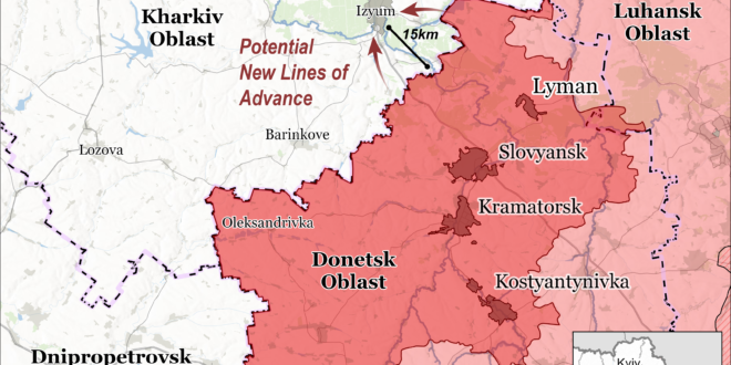 Russian positions along the Donetsk-Kharkiv and Donetsk-Dnipropetrovsk Oblast border areas would provide a much more advantageous launching point for a future Russian offensive into nearby areas of Kharkiv or Dnipropetrovsk oblasts than the current lines.