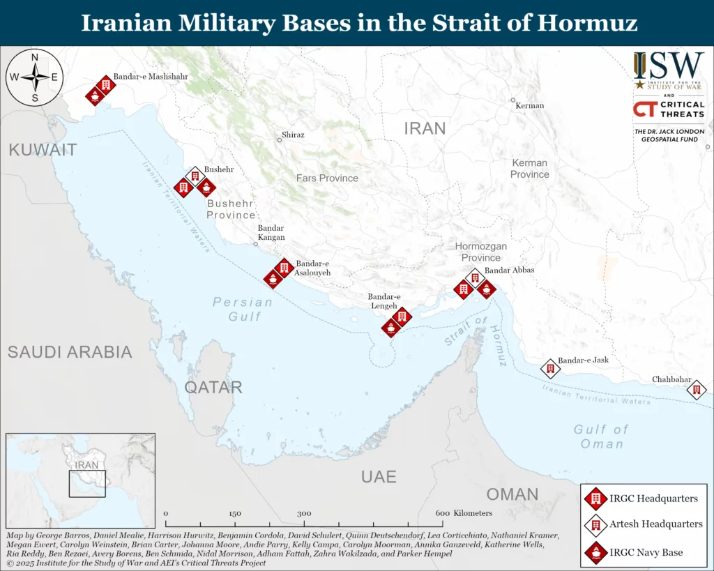 Iran has conducted several inspections of naval units in the Persian Gulf since the June 2025 Israel-Iran War due to concerns that the United States and its allies could seize Iranian vessels. Senior Iranian IRGC and Artesh commanders inspected naval facilities at least seven times between June and November 2025—most recently on November 11—to evaluate combat readiness.[6] Iranian officials have warned in October 2025 that Iran will close the Strait of Hormuz if the international community blocks Iranian oil exports, Iran’s most profitable export.[7] Several senior Iranian officials have touted Iranian naval capabilities and their destructive and deterrent effect towards Iran‘s adversaries in recent statements.[8]