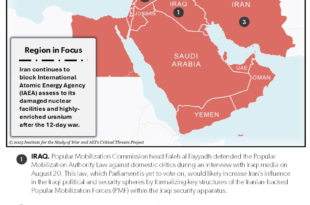 Iraqi Popular Mobilization Committee (PMC) Chairman Faleh al Fayyadh defended the Popular Mobilization Authority Law against domestic critics during an interview with Iraqi media on August 20.[1] This law, which Parliament has yet to vote on, would likely increase Iran’s influence in the Iraqi political and security spheres by formalizing …