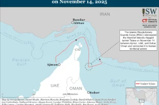 Toplines Three small Islamic Revolutionary Guards Corps (IRGC) vessels intercepted a Marshall Islands-flagged oil products tanker, Talara, and moved it into Iranian waters in the Strait of Hormuz on November 14.[1] The vessel is operated by Cyprus-based, German- and British-owned Columbia Ship Management. The vessel is owned by Pasha Finance, …