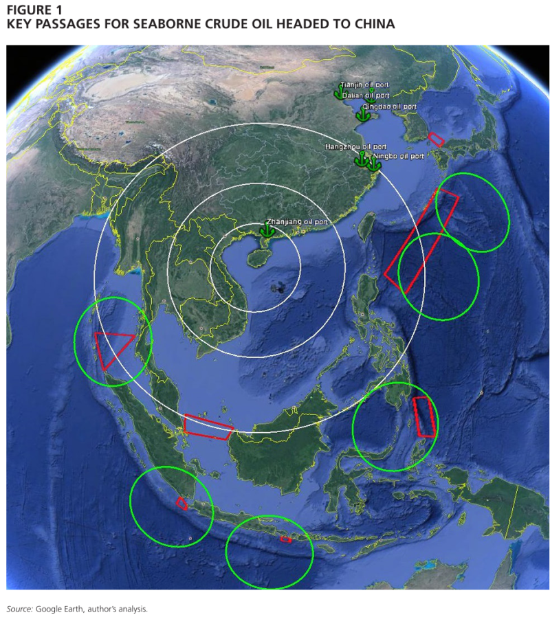 Il existe de nombreux documents datant de plusieurs décennies sur ce blocus et cet isolement de la Chine. À titre d’exemple, nous nous référons ici uniquement à ce document de 2018 concernant un blocus maritime pétrolier contre la Chine. Il contient une carte indiquant tous les endroits que les États-Unis veulent contrôler.