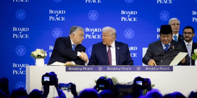 Hungarian PM Viktor Orban this week joined Donald Trump’s “Board of Peace” initiative as one of only two EU leaders to do so (alongside Bulgaria). Orban, who has stayed away from the World Economic Forum in Davos in recent years, traveled to Switzerland just to meet Trump and to visibly endorse his peace initiative – a new body aimed at promoting stability and helping to resolve conflicts and rebuild afterwards, initially focusing on Gaza but with ambitions to address other global disputes as well. However, many observers see it as potentially undermining existing international organisations such as the UN. Hungary’s official accession to the new body is still pending parliamentary approval and would not entail any financial commitment, according to a government resolution published in the national bulletin. As part of his charm offensive (probably also to encourage Trump to visit Hungary during the upcoming election campaign), Orban posted a photo of himself shaking hands with Trump, accompanied by the comment: “At the request of U.S. President Trump, Hungary has become a founding member of the Board of Peace.” Orban reiterated that his government supports “all international initiatives that can prevent wars and guarantee the security of the country.” His chief of staff, Gergely Gulyas, struck a more cautious tone, acknowledging that it remains to be seen how – and to what extent – this new initiative can contribute to peace, but adding that it is worth attempting.