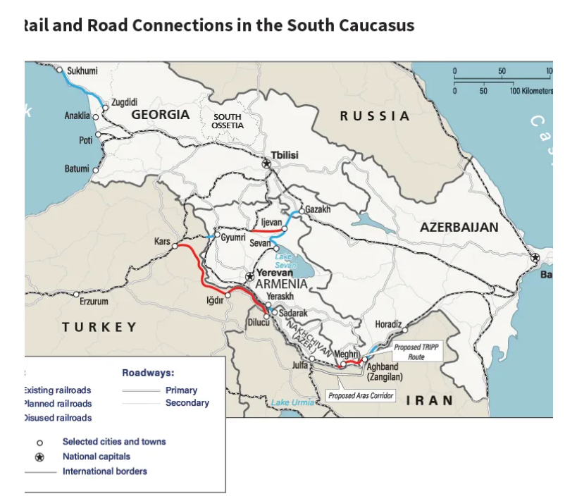 Today, there are new opportunities for regional connectivity and cooperation. In August 2025, during an Armenia-Azerbaijan summit hosted in Washington by U.S. President Donald Trump, the two countries’ leaders signed a draft peace treaty and a document on transportation connectivity, with a focus on new road and rail projects. Also signed by the U.S. president, this joint declaration committed the two sides to a framework for the creation of the Trump Route for International Peace and Prosperity (TRIPP). TRIPP runs through Armenia’s southern Syunik province (historically known as Zangezur), which links mainland Azerbaijan to its Nakhchivan exclave, and onward to Turkey.