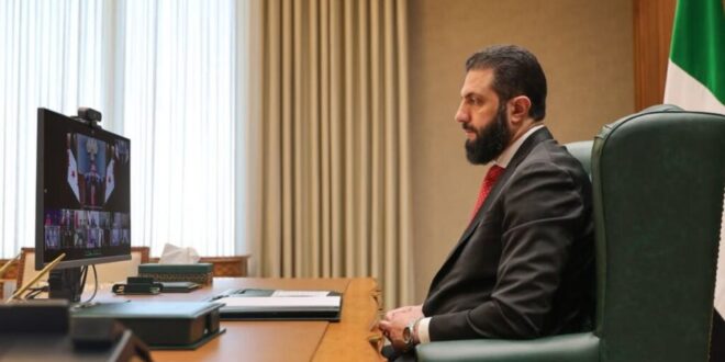 Syrian President Ahmed al-Sharaa participated in a video conference meeting that brought together several Middle Eastern leaders, at the invitation of European Council President Antonio Costa and European Commission President Ursula von der Leyen.
