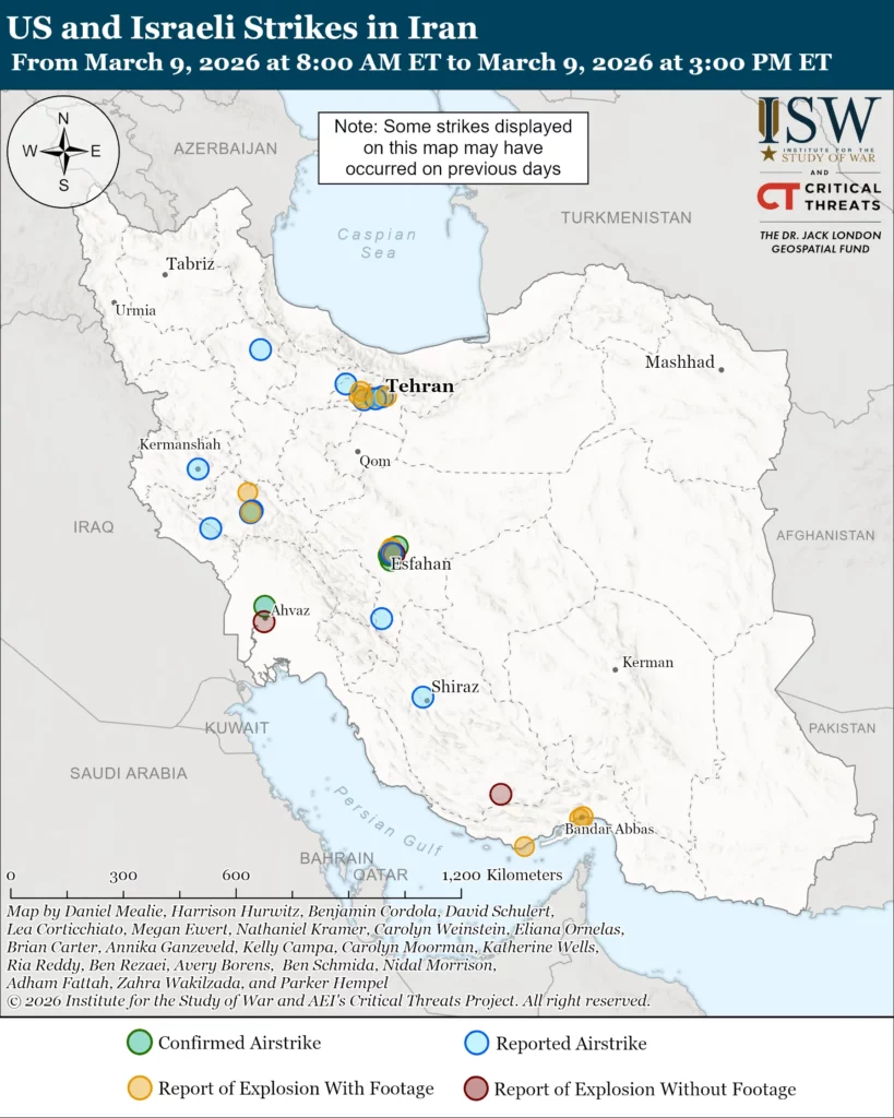 The Institute for the Study of War (ISW) and the Critical Threats Project (CTP) at the American Enterprise Institute are publishing two updates daily to provide analysis on the war with Iran. The morning update will focus on US and Israeli strikes on Iran and the Axis of Resistance’s response to the strikes. The evening update will be more comprehensive, covering events over the past 24-hour period and refining items discussed in the morning update.