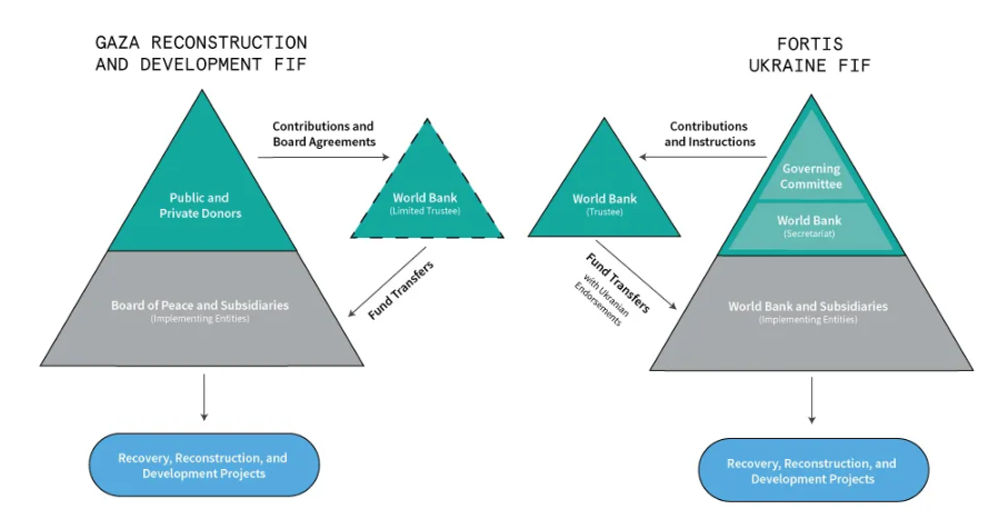Establishing a FIF for reconstruction purposes is unusual for the World Bank. FIFs are generally reserved “for the purpose of supporting global programs,” typically related to public health and climate issues, not to support localized development. Only two of the World Bank’s thirty-two FIFs have been used to fund reconstruction of a territory: one related to damage sustained by Ukraine in its ongoing war with Russia and the other concerning earthquake-related damage in Haiti. However, in neither case did the bank act as a limited trustee; rather, it formed part of the fund’s governing group and assumed the role of fiduciary to ensure proper use of the funds. These FIFs are also distinguished from the one established for Gaza in that a Ukrainian and Haitian government official either chaired or occupied a non-voting member seat in the respective governance group, and in both cases, the country’s own plans for reconstruction and development guided implementation.