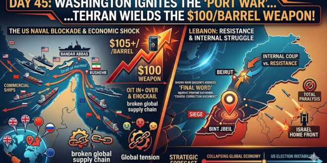 Nous sommes ce soir au bord d’une transformation dans le monde. Ce qui a commencé comme une guerre régionale pour briser l’Axe s’est officiellement transformé aujourd’hui en une crise économique globale sans précédent. Avec l’entrée en vigueur du “blocus naval” américain total sur les ports iraniens, l’administration Trump a choisi le suicide économique après l’échec militaire. Pendant ce temps, au Liban, tous les regards sont tournés vers la prochaine intervention du secrétaire général du Hezbollah, le cheikh Naim Qassem. Il ne s’agira pas d’un simple appel au rassemblement, mais plutôt d’un “document de changement de cap” rigoureux qui vise à dissuader les autorités politiques d’offrir des concessions injustifiées et à dénoncer la mascarade des “négociations directes”.