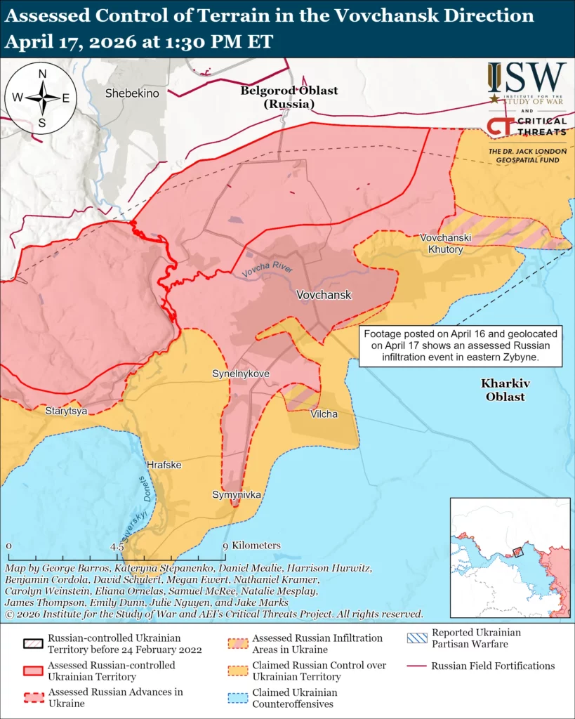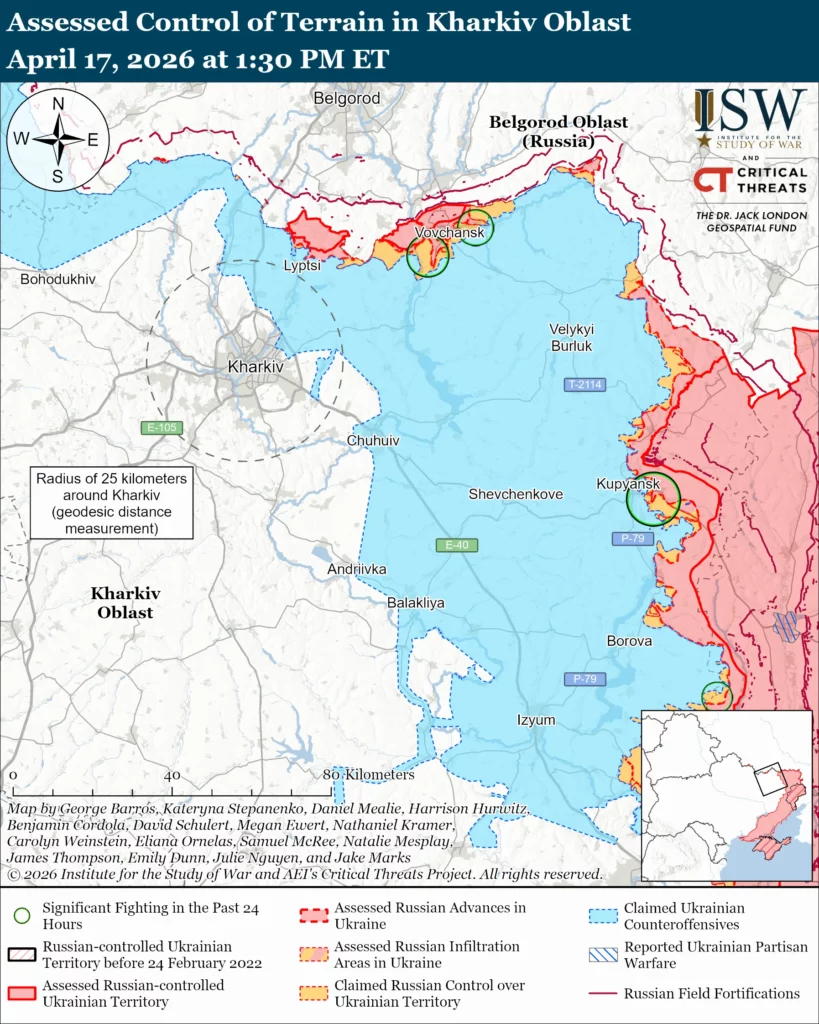 Neither Ukrainian nor Russian sources reported Russian ground attacks in the Velykyi Burluk direction on April 17.