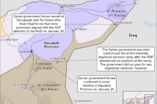 Toplines Syrian President Ahmed al Shara likely decided to temporarily halt the Syrian government offensive on Syrian Democratic Forces-held (SDF) territory in northeastern Syria after a phone call with US President Donald Trump on January 19.[1] Shara and SDF Commander Mazloum Abdi failed on January 19 to finalize a ceasefire …