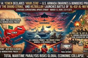 L’Axe de la Résistance a resserré l’étau. Le Yémen à “l’heure zéro”, la CIA traquée par les Irakiens, l’offensive “Al-Asf al-Ma’kul” du Hezbollah & l’Iran maintient le contrôle sur le détroit d’Ormuz. Le Yémen proclame “l’heure zéro” — L’armada américaine (Marines et bombardiers) se prépare pour “la grande frappe”, et …