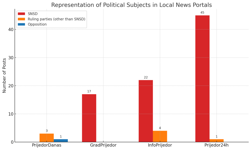 Out of the 22 political subjects registered for the 2024 local elections in Prijedor, these news portals mentioned only six. Only one piece of content featured an opposition party.