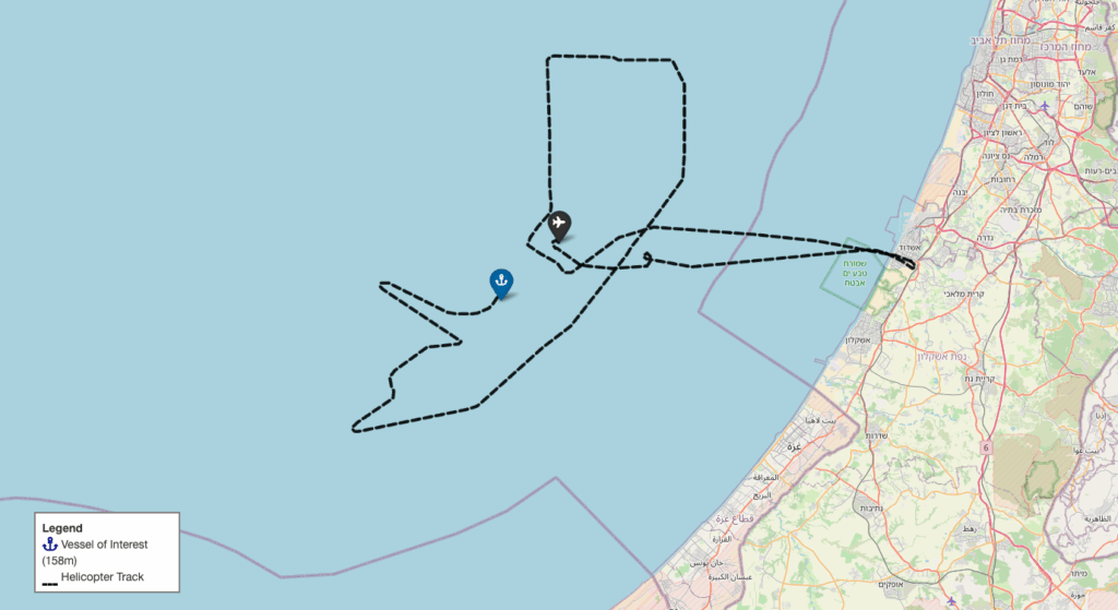 Two days later, the same MH-60 Blackhawk flew from a vessel to Israel, before flying into airspace miles away from Gaza. It then landed on an unidentified vessel 50 km away from the Gaza shoreline which did not have its transponder switched on.