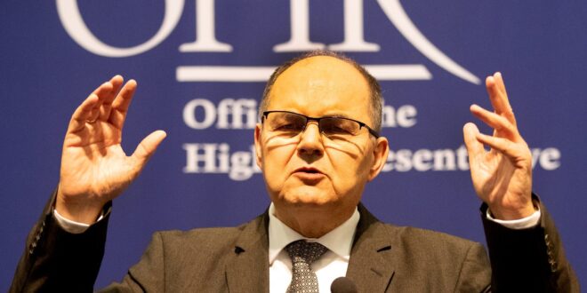 It is November 21, 30 years to the day since the Dayton Peace Accords were initialled at an airbase in Ohio, and the press has been gathered for a joint press conference by the international community’s peace overseer in Bosnia and Herzegovina, German Christian Schmidt, and Luigi Soreca, the Italian head of the European Union delegation and the EU Special Representative in Bosnia and Herzegovina.