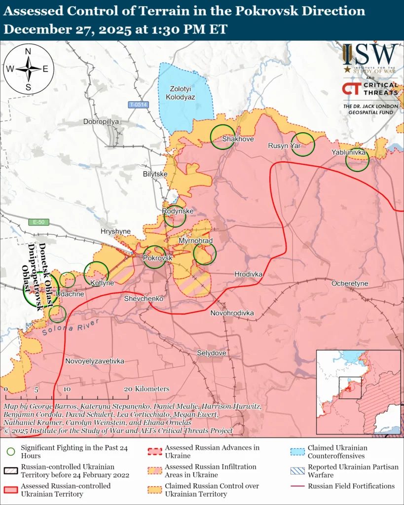 Russian forces continued offensive operations in the Pokrovsk direction on December 27 but did not make confirmed advances.