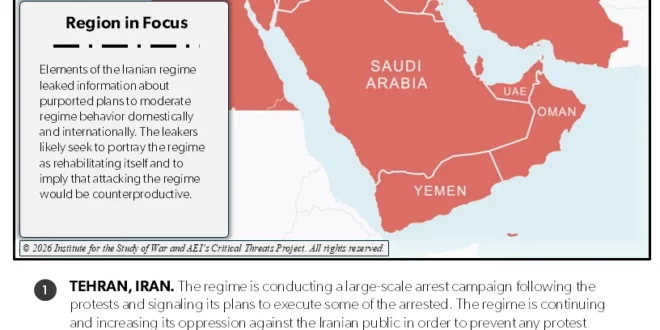 Iranian Information Operation: Elements of the Iranian regime leaked information about purported plans to moderate regime behavior domestically and internationally. A former regime official close to Supreme National Security Council Secretary Ali Larijani told an English-language diaspora outlet that Larijani is pushing to moderate regime policies and conduct major economic and social reforms. The leak is likely meant to dissuade the United States from attacking Iran in response to the brutal regime crackdown on protests. The leakers likely seek to portray the regime as rehabilitating itself and to imply that attacking the regime would be counterproductive.
