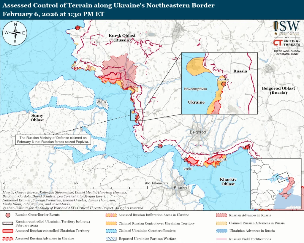 Russian forces continued offensive operations in northern Sumy Oblast on February 6 but did not make confirmed advances.