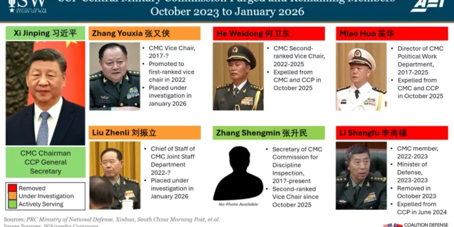 Key Takeaway: Chinese Communist Party (CCP) General Secretary Xi Jinping has expanded his military purges to include two of the seniormost officers in the People’s Liberation Army (PLA). Xi may have purged them because he saw them as undermining his leadership and military objectives. The continued purges have reduced the Central Military Commission (CMC) since 2023 from seven members to two members, including Xi, transforming the body into an extension of Xi’s will rather than a major military decision-making forum. The CMC purges consolidate Xi’s control over the military but risk isolating him or surrounding him with sycophants, which in turn risks military miscalculations.