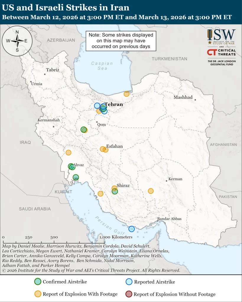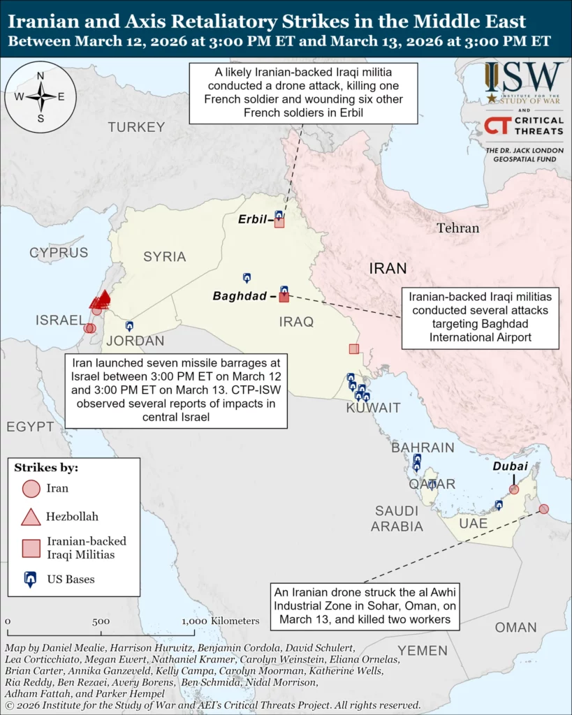 NOTE: ISW-CTP will not publish morning updates covering the war with Iran on March 14 and 15. ISW-CTP will publish threads on its social media channels in the morning on these days that cover the latest developments in the war and include relevant maps.