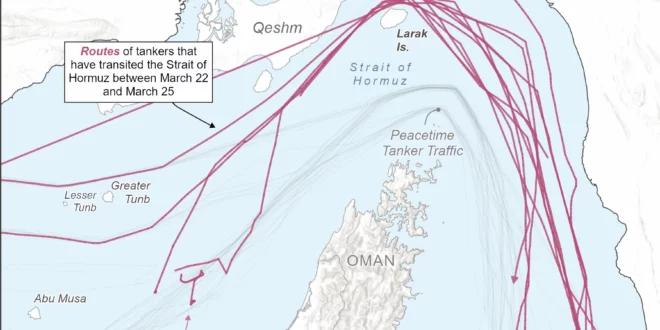 Iran sent a letter to International Maritime Organization member states on March 22 stating that “non-hostile” ships can pass through the Strait of Hormuz if they coordinate with Iran, according to the Financial Times.[21] Ships associated with the United States, Israel, or other “participants in the aggression” are not eligible for safe passage. This report is consistent with reports that at least 26 vessels have taken an Iranian-approved route through the Strait of Hormuz as of March 25.[22] Iran has reportedly required some of these vessels to pay a fee to transit the strait. Maritime intelligence firm Lloyd’s List, citing three sources with direct knowledge of the new system, reported that vessel operators are required to contact intermediaries with connections to the Islamic Revolutionary Guard Corps (IRGC) before transiting through the strait.[23] Lloyd’s List reported that 92 percent of the current traffic in the strait is comprised of Iranian (67 percent), Greek (15 percent), and Chinese (10 percent) vessels.[24]