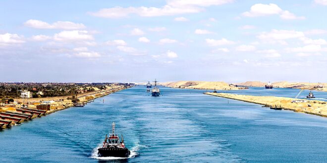 Arleigh Burke-class guided-missile destroyer USS Bainbridge (DDG 96) transits the Suez Canal, March 5, 2026. (U.S. Navy photo)