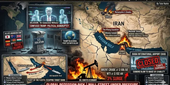 Si la hausse du baril se poursuit & qu’Ormuz reste fermé, Wall Street & consorts forceront la Maison Blanche à battre en retraite pour éviter l’effondrement de l’économie capitaliste mondiale. Trump confronté au “cauchemar de son isolement” et se berce d’illusions avec “l’IA”… Les porte-avions prennent la fuite, Dubaï ferme …
